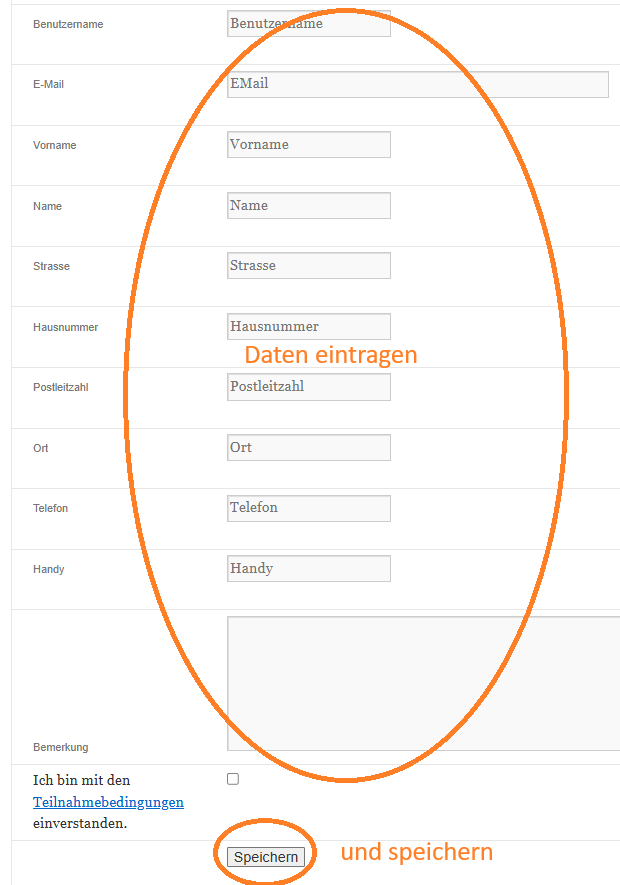 Fülle das Formular aus und bestätige die Angaben mit „speichern“.